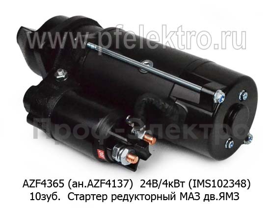 Артикул: AZF 4137 (IMS102348) 24В/4кВт 10зуб (ан. AZF 4365)