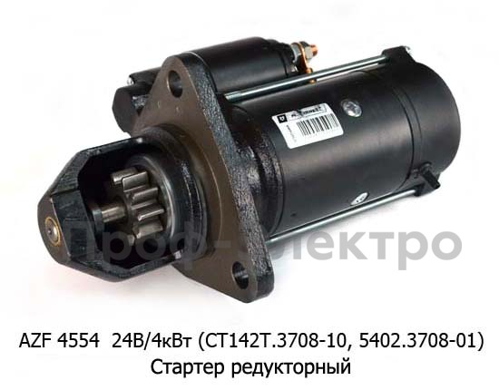 AZF 4554 24В/4кВт (ан. 5402.3708-01) 10зуб. Стартер редукторный для камаз 740.50-360, 740.51-320, 740.30-260, лиаз, нефаз, Евро-2 (АЕ)