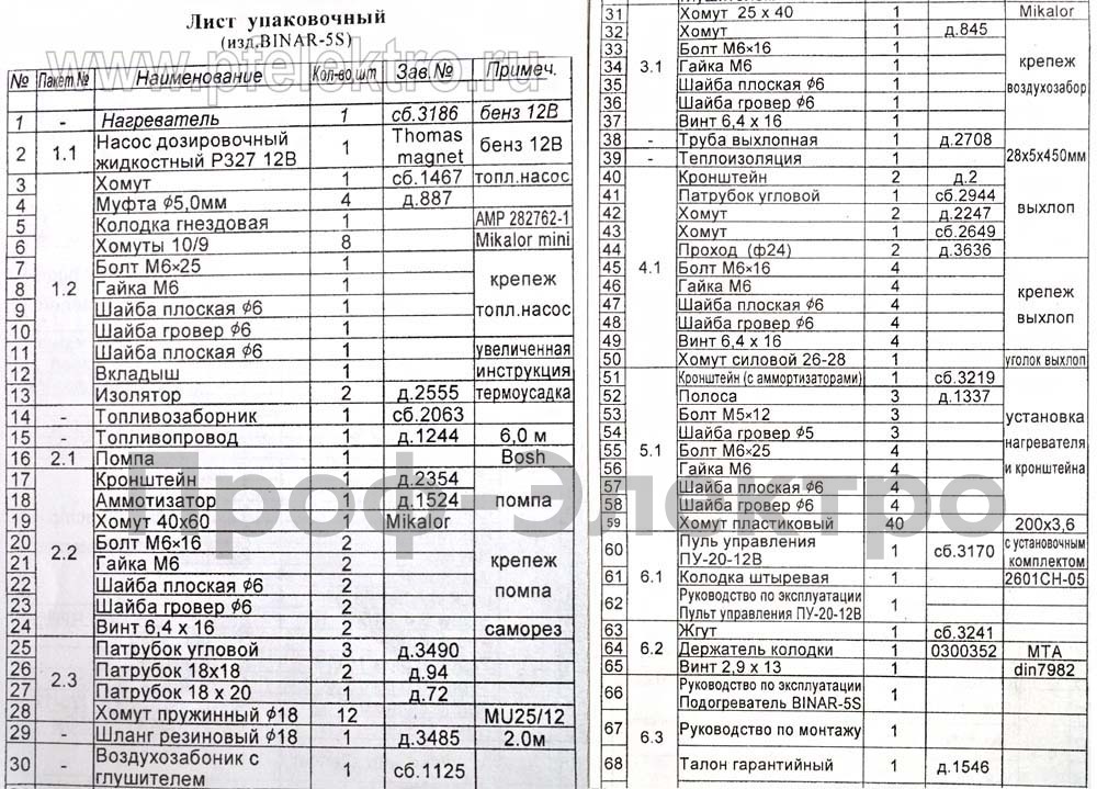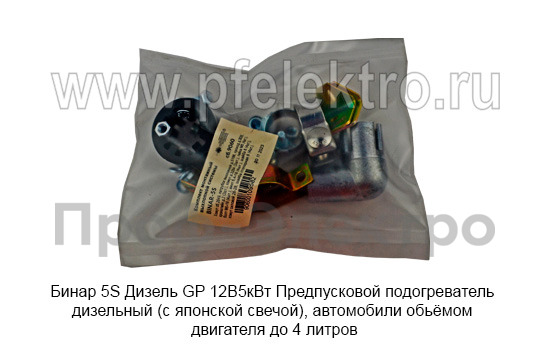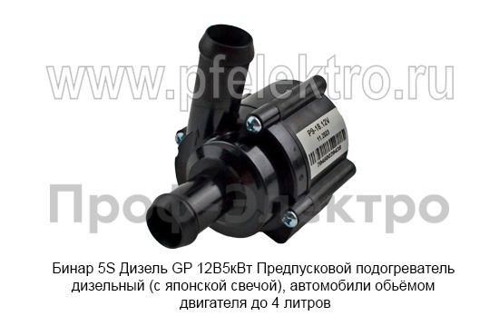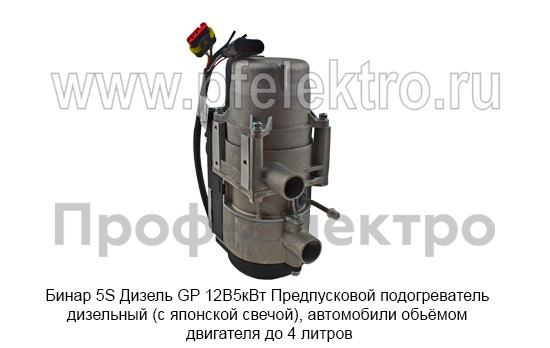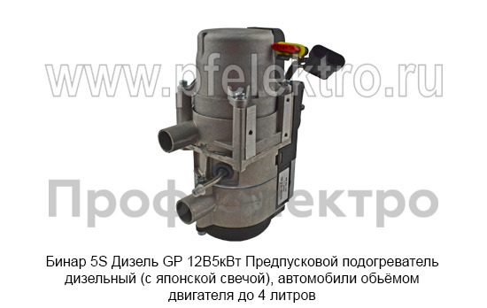Бинар 5S-5195 Дизель GP 12В/5кВт Предпусковой подогреватель дизельный Бинар (с японской свечой), автомобили обьёмом двигателя до 4 литров (Адверс)