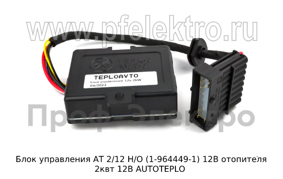 Блок управления АТ 2/12 Н/О (1-964449-1) 12В для отопителя 2квт 12В AUTOTEPLO - это надежное устройство, разработанное компанией ТеплоАвто для управления отопителем мощностью 2 кВт. Блок предназначен для работы с автономными отопительными системами и обеспечивает надежное и эффективное функционирование отопителя.