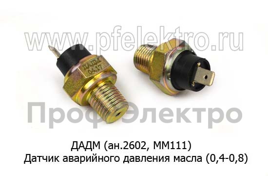 ДАДМ (ан.2602, ММ111) Датчик аварийного давления масла (0,4-0,8) под штырь, К1/4'' маз, мтз, моаз, паз, краз, ммз, белаз, Амкорд, Неман (Экран)
