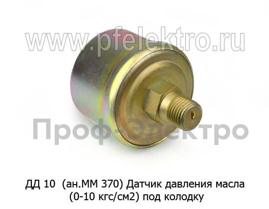 ДД 10 (ан.ММ 370) Датчик давления масла (0-10 кгс/см2), под колодку моаз, белаз, маз, мтз, ммз, Неман, паз, Амкорд, Гомсельмаш (Экран)