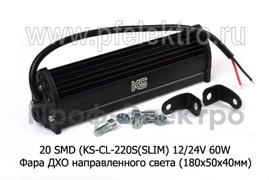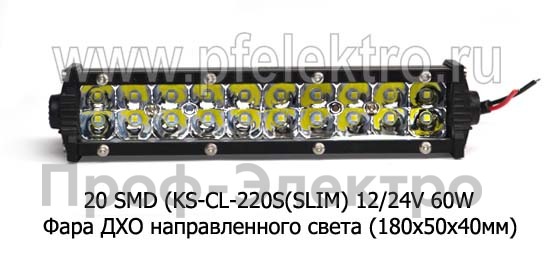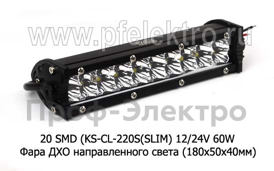 Дневные ходовые огни 20 SMD (KS-CL-220S(SLIM) 12/24V 60W Фара ДХО направленного света (2 Ряд) OFF-Road (180х50х40мм) все т/с (К)