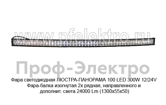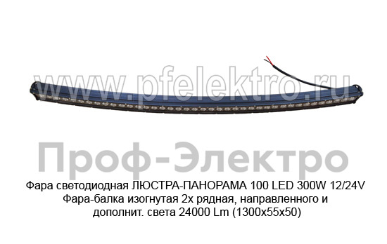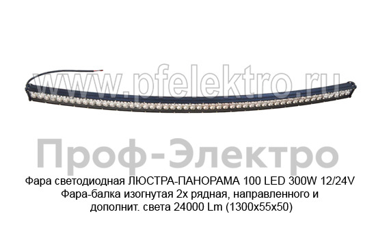 Фара светодиодная ЛЮСТРА-ПАНОРАМА 100 LED 300W 12/24V Фара-балка изогнутая 2х рядная, направленного и дополнит. света 24000 Lm (1300х55х50) (К)