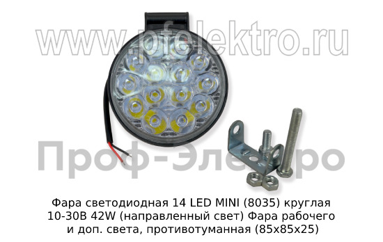 Артикул: Фара светодиодная 14 LED MINI (G0004-MINI) круглая 10-30В 42W (направленный свет)