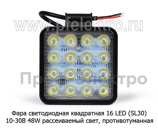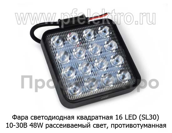 Артикул: Фара светодиодная 16 LED (09.2010) квадратная (рассеиваемый свет) 10-30В 48W