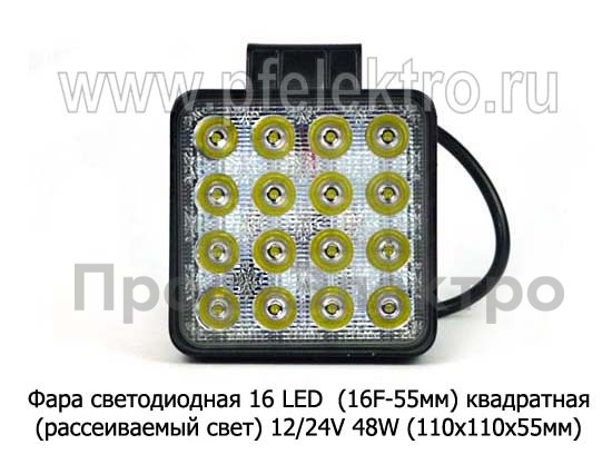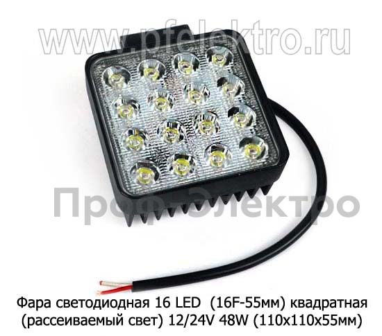 Артикул: Фара светодиодная 16 LED (G0001-45MM) квадратная (рассеиваемый свет) 12/24V 48W