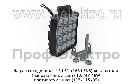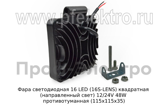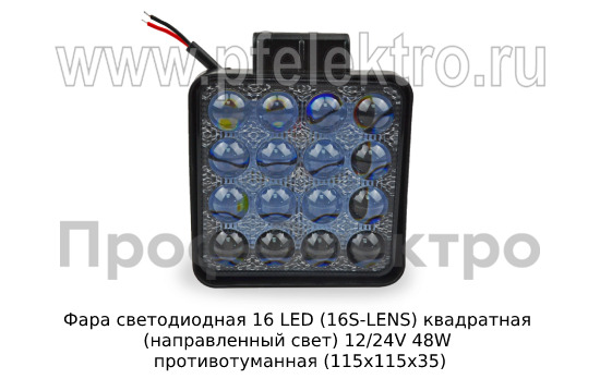 Фара светодиодная 16 LED (G0002-35MM-LENS) квадратная (направленный свет) 12/24V 48W Фара противотуманная (115х115х35) все т/с (К)