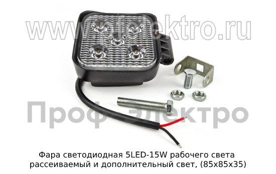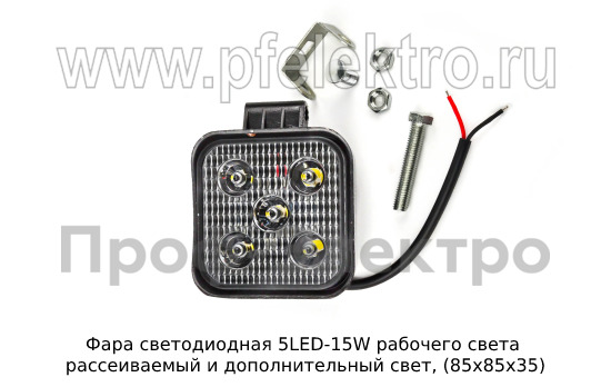Фара светодиодная 5 LED MINI 15W 12/24В Фара рабочего света рассеиваемый и дополнительный свет (85х85х35) тракторы, спецтехника (К)