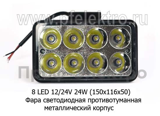 Фара светодиодная 8 LED (1137) прямоугольная 10-30В 24W Фара противотуманная ДХО и ближнего света (1680LM) метал. корпус (150х115х60) (К)