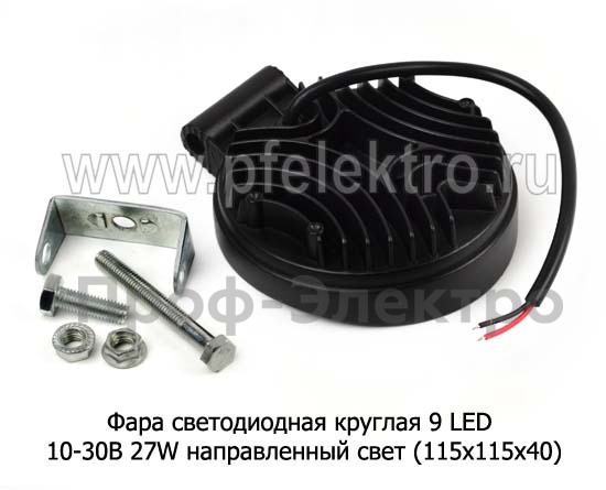 Фара светодиодная 9 LED (G0006-45MM) круглая 10-30В 27W (направленный свет) Фара ближнего и допол. света, противотуманная (115х115х45) все т/с (К)