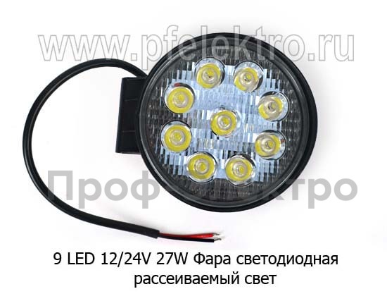 Артикул: Фара светодиодная 9 LED (G0006-35MM) круглая 10-30В 27W (рассеиваемый свет)