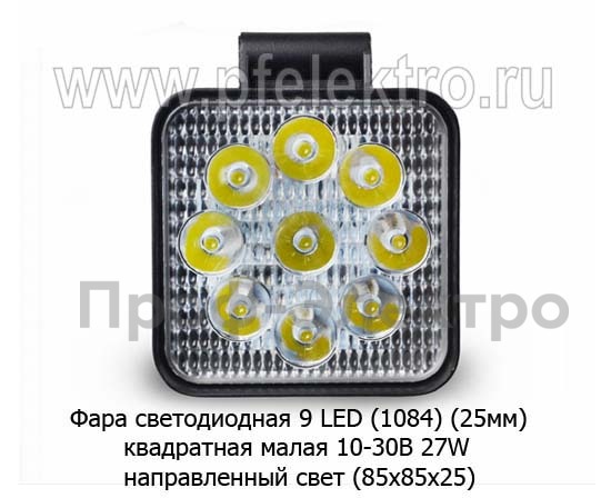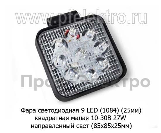 Артикул: Фара светодиодная 9 LED MINI (G-0003) квадратная 10-30В 27W (направленный свет)