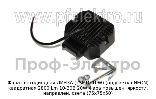 Артикул: Фара светодиодная ЛИНЗА (2SMDх10W) (подсветка NEON) квадратная 2800 Lm 10-30В 20W