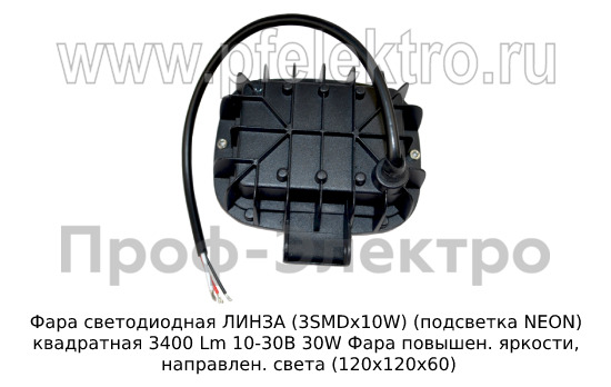 Фара светодиодная ЛИНЗА G0241 (3SMDх10W) (подсветка NEON) квадратная 3400 Lm 9-32В 35W Фара повышен. яркости, направлен. света (120х120х60) (К)