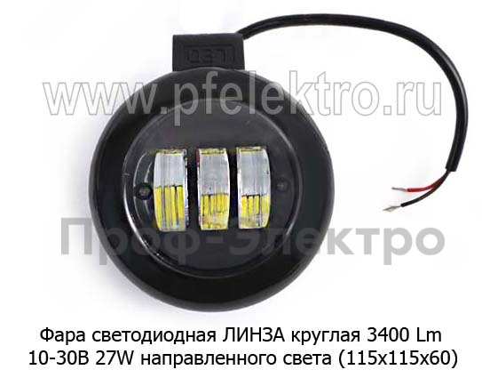 Артикул: Фара светодиодная ЛИНЗА G0017 (3SMDх9W) круглая 3400 Lm 10-30В 27W