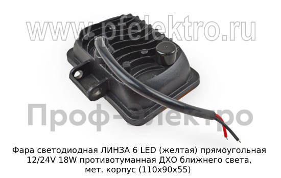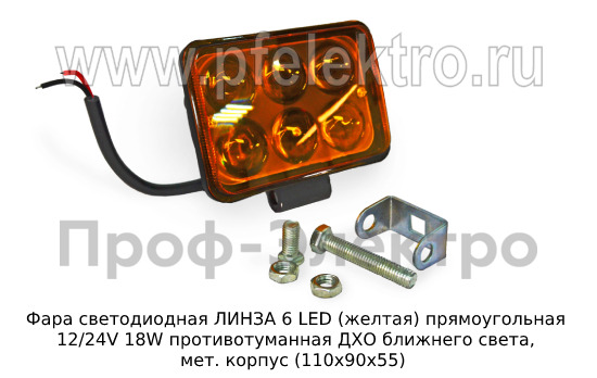 Артикул: Фара светодиодная ЛИНЗА 6 LED (желтая) прямоугольная 12/24V 18W