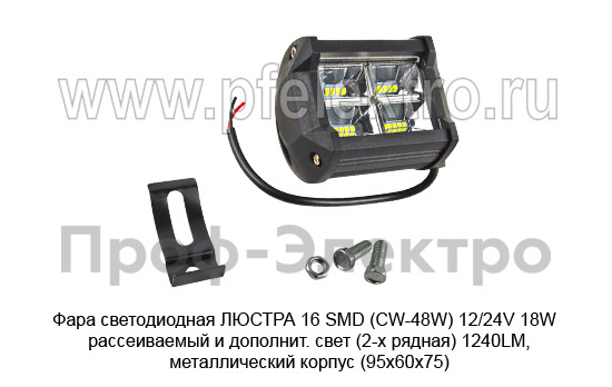 Фара светодиодная ЛЮСТРА 16 SMD (CW-48W) 12/24V 18W Фара рассеиваемый и дополнит. света (2-х рядная) 1240LM,металлический корпус (95х60х75) (К)