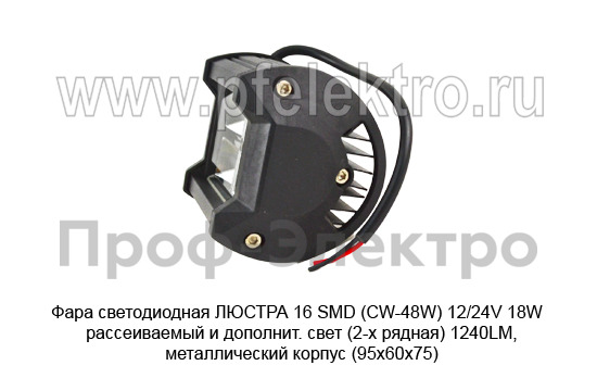 Артикул: Фара светодиодная ЛЮСТРА 16 SMD (CW-48W) 12/24V 18W