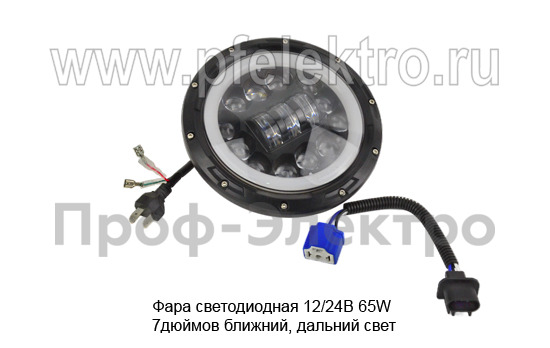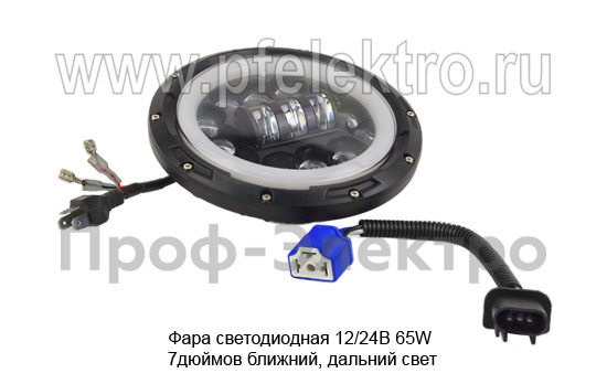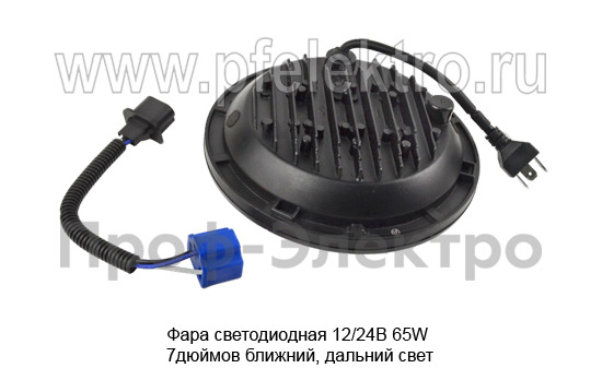 Фара светодиодная (на Ниву) 12/24В 65W Фара светодиодная 7дюймов рестайлинг Нива, грузовые ТС ближний, дальний свет (К)