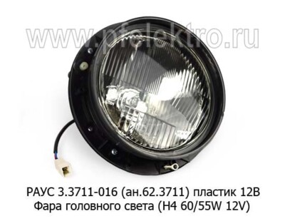 Фара головного света (H4 60/55W 12V) под гидро- или электрокорректор, с ободом для уаз, газ, паз (Бел-Фер)