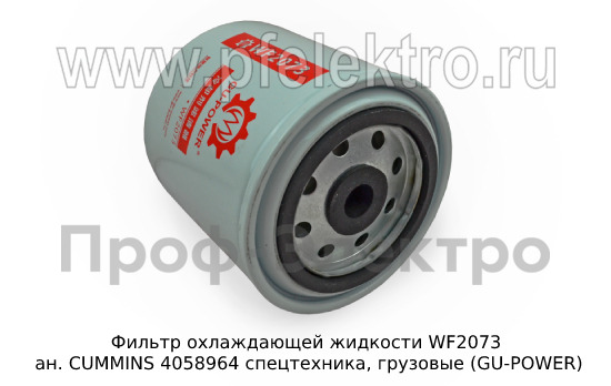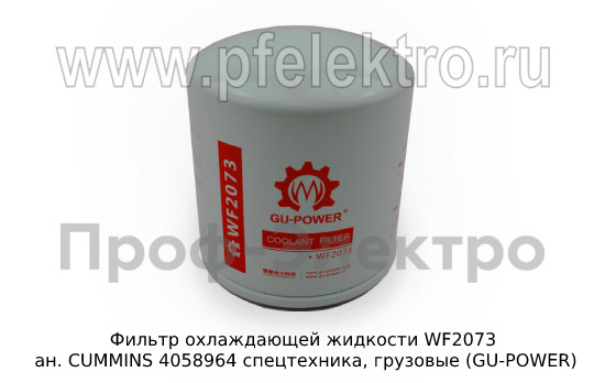Фильтр охлаждающей жидкости WF2073 Фильтр охлаждающей жидкости ан. CUMMINS 4058964 спецтехника, грузовые (GU-POWER)