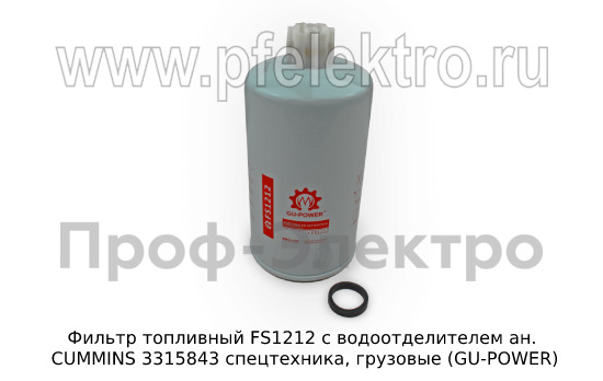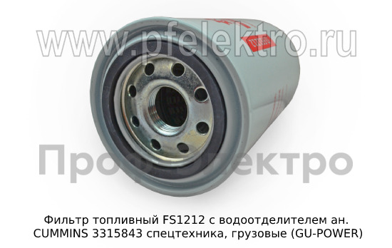 Фильтр топливный FS1212 c водоотделителем Топливный фильтр ан. CUMMINS 3315843 спецтехника, грузовые (GU-POWER)
