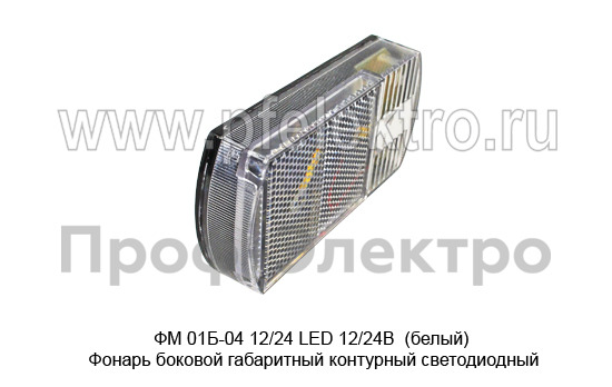ФМ 01Б-04 12/24 LED 12/24В (белый) - это боковой габаритный контурный светодиодный фонарь, предназначенный для использования на транспортных средствах. Он оснащен яркими светодиодами, которые обеспечивают отличную видимость в темное время суток. Фонарь выполнен в белом цвете, что делает его заметным на дороге.
