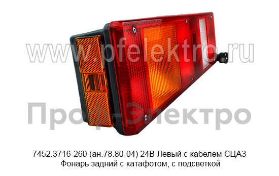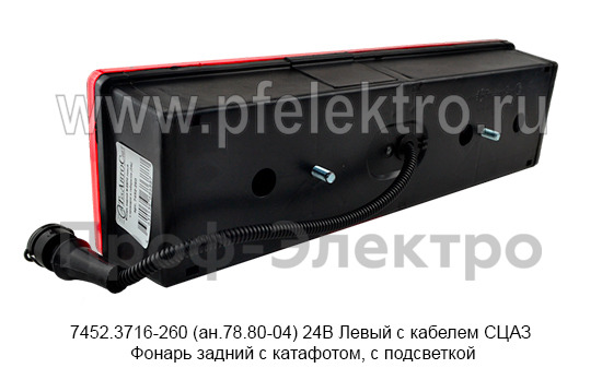 7452.3716-260 (ан.78.80-04) 24В Левый с кабелем СЦАЗ Фонарь задний с катафотом, с подсветкой, камаз, маз, урал, зил (ТАС)