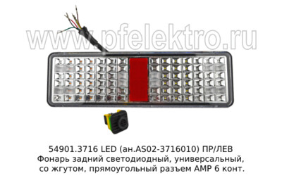 Фонарь задний светодиодный, универсальный, со жгутом, прямоугольный разъем AMP 6 конт. для камаз 54901 (К)