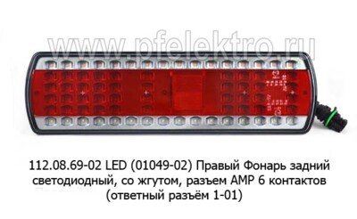 Фонарь задний светодиодный, со жгутом, разъем AMP 6 контактов (ответный разъём 1-01) для камаз (К)
