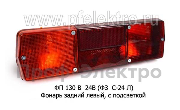 ФП 130В 24В Левый (129-02) Фонарь задний для газ, зил, камаз, с подсветкой (Европлюс)
