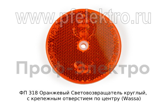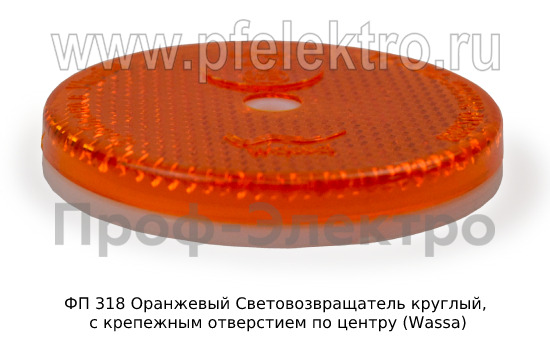 ФП 318 Оранжевый Световозвращатель круглый, с крепежным отверстием по центру все т/с (Wassa)