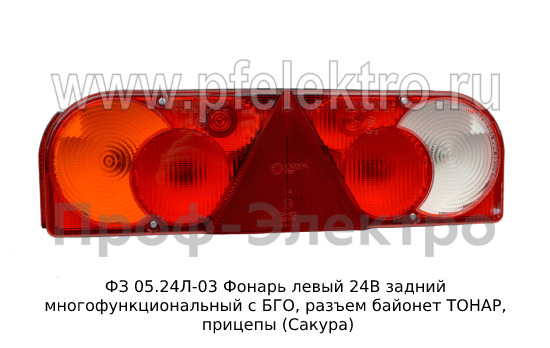 ФЗ 05.24Л-03 Фонарь задний 24В Левый многофункциональный с БГО, разъем байонет ТОНАР, прицепы (Сакура)