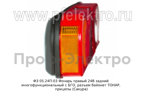 ФЗ 05.24П-03 Фонарь задний 24В Правый задний многофункциональный с БГО, разъем байонет ТОНАР, прицепы (Сакура)