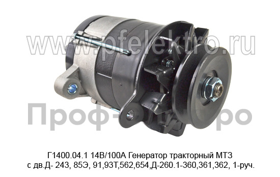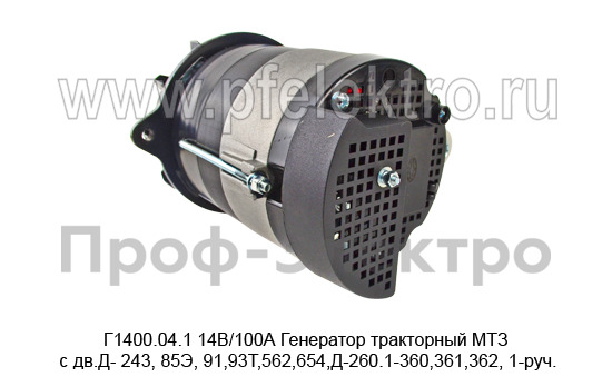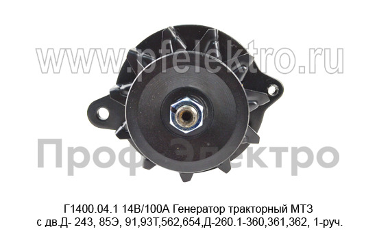 Г1400.04.1 14В/100А Генератор тракторный МТЗ с дв.Д- 243, 85Э, 91,93Т,562,654,Д-260.1-360,361,362, 1-руч. (АЕ)