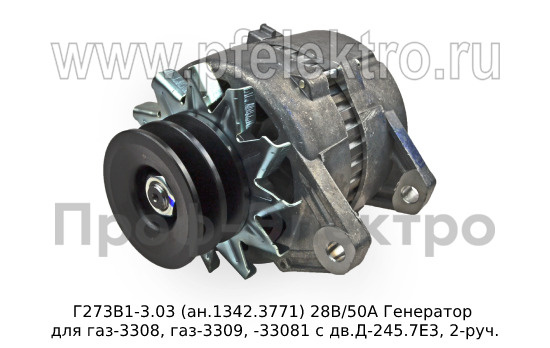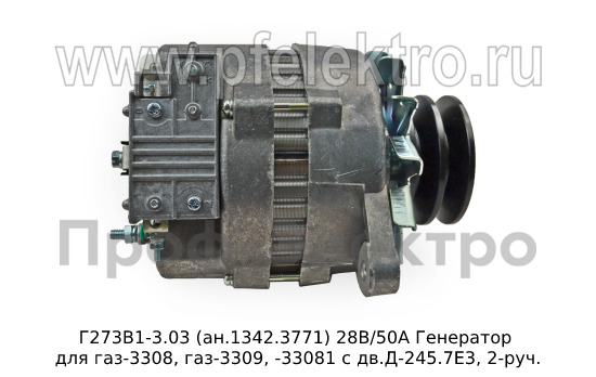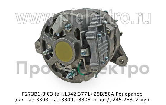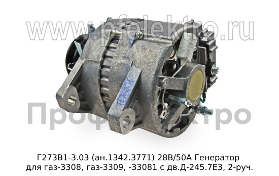 Г273В1-3.03 (ан.1342.3771) 28В/50А Генератор для газ-3308, газ-3309, -33081 с дв.Д-245.7Е3, 2-руч. (ПРАМО-АТЭ)