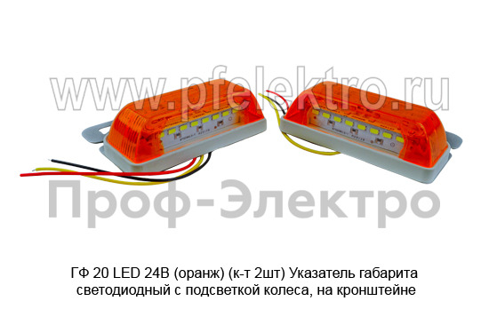 ГФ 20-01 LED 24В (оранж) (к-т 2шт) Указатель габарита светодиодный с подсветкой колеса, на кронштейне, прицепы, полуприцепы, грузовые т/с (К)