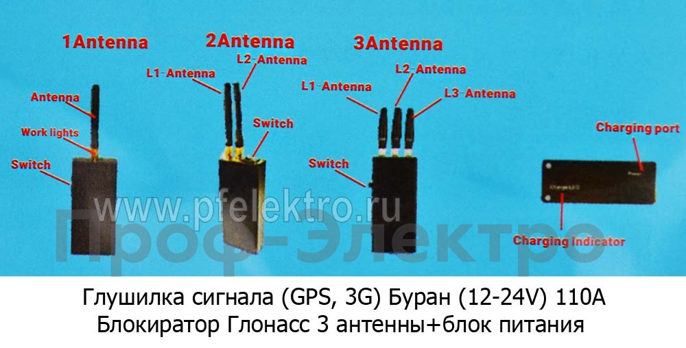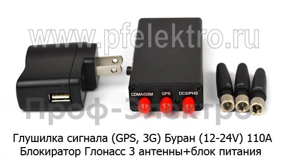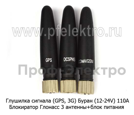 Глушилка сигнала (GPS, 3G) Буран (12-24V) Блокиратор Глонасс 3 антенны+блок питания (110А) все т/с