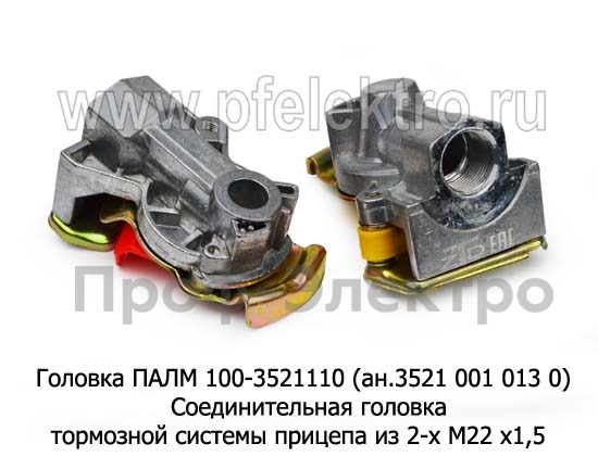Головка ПАЛМ 100-3521110 (ан.3521 001 013 0) Соединительная головка тормозной системы прицепа из 2-х М22 х1,5 (ZTD)