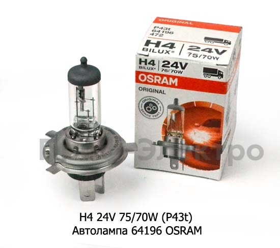H4 24V 75/70W (P43t) Автолампа 64196 OSRAM, Осрам Н4, все т/с 24В