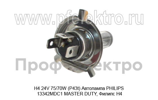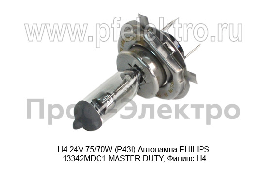 H4 24V 75/70W (P43t) Автолампа PHILIPS 13342MDC1 MASTER DUTY, Филипс Н4, все т/с 24В