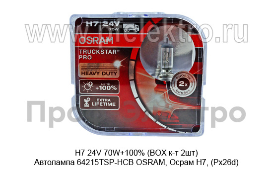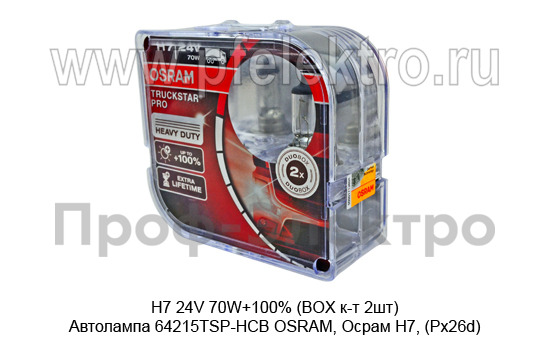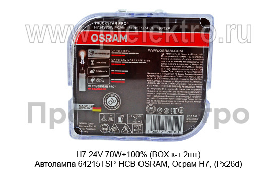 H7 24V 70W+100% (BOX к-т 2шт) Автолампа 64215TSP-HCB OSRAM, Осрам Н7, (Px26d) все т/с 24В