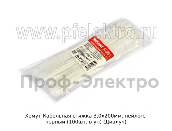 Хомут Кабельная стяжка 3,0х200мм, нейлон, черный (100шт. в уп) (Маяк)