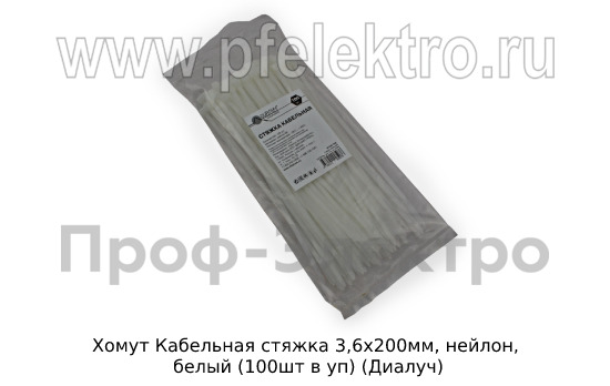 Хомут Кабельная стяжка 3,6х200мм, нейлон, белый (100шт в уп) (Диалуч)