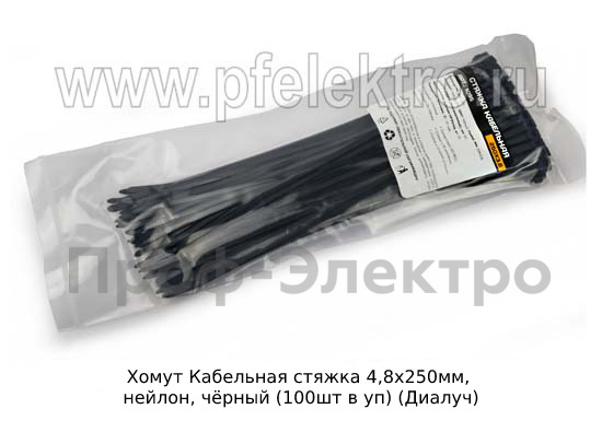 Хомут Кабельная стяжка 4,0х250мм, нейлон, чёрный (100шт в уп) (Маяк)