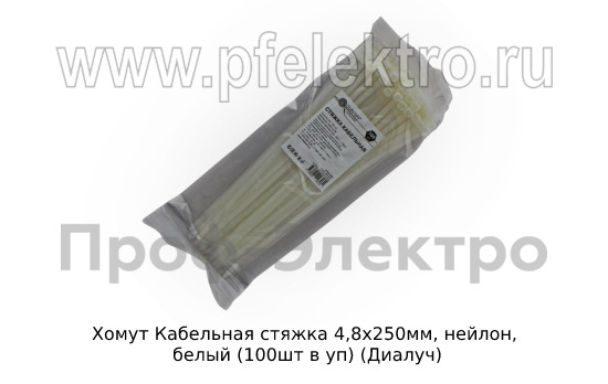 Хомут Кабельная стяжка 4,8х250мм, нейлон, белый (100шт в уп) (Диалуч)