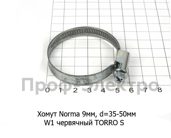 Хомут Norma 9 мм, d=35 -50 мм Хомут червячный W1 TORRO S