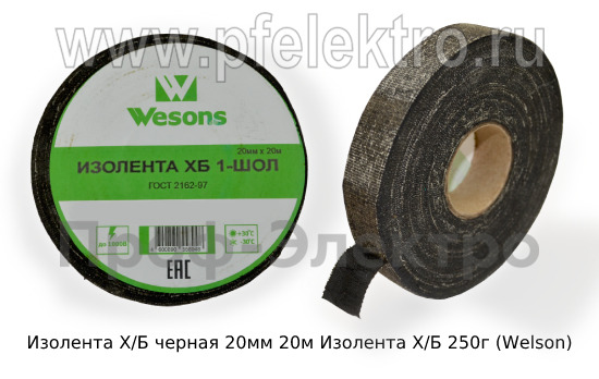 Изолента Х/Б черная 20мм 20м Изолента Х/Б 250г все т/с (Welson)
