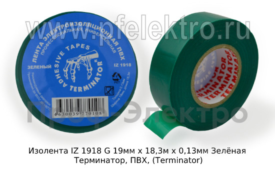 Изолента IZ 1918 G 19мм х 18,3м х 0,13мм Зелёная Изолента Терминатор является незаменимым продуктом для электриков и мастеров по ремонту. Она удобна в использовании и имеет знаковый зеленый цвет, что обеспечивает легкость визуального контроля и не дает возможности пропустить даже самые мелкие детали.